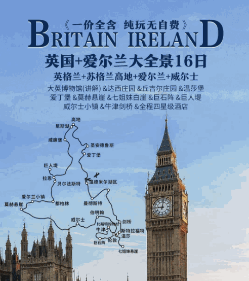 大英博物館(中文講解)&達西莊園&丘吉爾莊園&溫莎堡&愛丁堡 莫赫懸崖&七姐妹白崖&巨石陣&巨人堤&威爾士小鎮(zhèn) 牛津&劍橋&全程四星級酒店