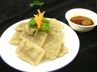 12、將燒餅切小塊,湯料及湯汁澆在燒餅上,加辣椒油、蒜汁、小蔥末、醋調味。(如果是新烙的餅,直接澆汁就可以吃了,不用把燒餅放入湯鍋中煮,否則燒餅沒嚼頭了。但燒餅是隔夜的,就要煮煮再吃。這是我家的吃法,呵呵~)